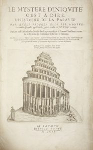 Édition originale de cet ouvrage important, révélateur des tensions religieuses au lendemain de l’assassinat du roi Henri IV.{CR}Philippe de Mornay (1549-1623) était un politicien, polémiste protestant et conseiller d’Henri IV. Ce dernier lui confia la garde de la ville de Saumur qui s’imposa comme la capitale politique du protestantisme français. À la mort du monarque, Marie de Médicis et le jeune roi Louis XIII se positionnèrent comme d’ardents défenseurs du catholicisme, s’opposant ainsi à Philippe de Mornay qui défendit fermement les garanties qui avaient été accordées aux protestants. C’est dans ce contexte qu’il décida de publier son Mystère d’iniquité qu’il avait commencé à composer en 1607. Il y fait l’historique de la papauté et dénonce avec véhémence son évolution, révélant le complot jésuite et romain ; il va jusqu’à conclure que le pape est l’Antéchrist et Rome la « Babylone de l’Apocalypse ».{CR}L’ouvrage fut presque aussitôt condamné par la Sorbonne au mois d’août 1611 et des centaines d’exemplaires furent saisis. Il parut sous deux formes, en français dédié à Louis XIII et en latin dédié à Jacques Ier, roi d’Angleterre.{CR}L’édition comporte sur le titre une grande gravure sur cuivre. Elle représente une tour de Babel sur pilotis, à laquelle un homme met le feu. Sur la gauche un jésuite regarde mélancoliquement la chute à venir de la tour.{CR}Reliure restaurée ; si les plats sont d’origine le dos a été refait au XXe siècle. Titre remmargé, quelques mouillures dans la marge supérieure de plusieurs feuillets, déchirure sans manque aux feuillets R2 et DDd4, manque dans l’angle inférieur du feuillet X4, plusieurs feuillets roussis ou tachés.