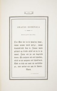 Cet ouvrage polyglotte est sans conteste l’une des plus belles et des plus célèbres productions de l’imprimeur et typographe italien Giambattista Bodoni (1740-1813).{CR}Ce dernier a réussi le tour de force d’imprimer le Notre père en 155 langues ou dialectes différents, à l’aide de caractères typographiques qu’il a lui même conçus. Dans une préface où il donne la genèse de cette édition, il explique, comme pour justifier la difficulté d’une telle entreprise, que « pour compléter et perfectionner un caractère Latin il faut près de 400 matrices ; 756 pour l’Arabe ; 1132 pour le Malabare ; 550 pour l’Ethiopien etc. » Il ajoute : « De plus, dans la majeure partie de mes caractères Grecs, les accens et les esprits ne sont pas rapportés comme on le pratique dans les Imprimeries même les plus célèbres, mais ils sont tous fondus en même tems que les lettres, en sorte que les matrices de la même voyelle ont été frappées jusqu’à vingt-quatre fois. Ce procédé rend la composition plus régulière et plus élégante… ».{CR}Ce livre est de ce fait le seul qui offre autant de langues et d’alphabets différents imprimés en caractères mobiles en un volume, totalisant 97 sortes de caractères distincts. Il se divise en quatre parties : la première comprenant les langues d’Asie, la seconde les langues d’Europe, la troisième les langues africaines et la dernière les langues d’Amérique. {CR}Tirée à petit nombre, l’édition est dédiée au vice-roi et à la vice reine d’Italie, c’est-à-dire Eugène de Beauharnais et Augusta-Amélie de Bavière. Non commercialisée, elle a été achetée en totalité par le gouvernement italien pour pouvoir par la suite être offerte. La dédicace et la préface sont en français, italien et latin. Le texte est imprimé à l’intérieur d’un double cadre de deux filets noirs.{CR}Brunet considérait cet ouvrage comme l’un des « nombreux chefs-d’œuvre » que le XIXe siècle a produit.{CR}Exemplaire imprimé sur un beau papier vergé, conservé dans une belle reliure de l’époque. Il n’y eut que 2 exemplaires imprimés sur papier vélin français.{CR}Dos légèrement passé. Petites fentes à la charnière du premier plat, sans gravité, infime manque à un coin. Parfait état intérieur.