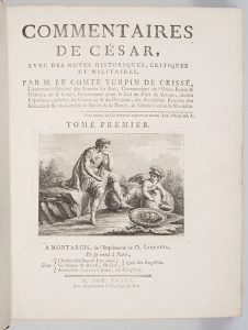 [CÉSAR (Jules)] - Commentaires de César, avec des notes historiques, critiques et militaires, par M. Lancelot, Comte Turpin de Crissé. A Montargis, de l’Imprimerie de Cl. Lequatre, 1785. 3 vol. In−4, Plein veau marbré, dos à nerfs ornés....