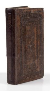 f. (soit 62p). Plein veau, plats d’origine, dos lisse refait. Plats ornés de motifs sur une plaque poussée à froid. Beau recueil de la plupart des textes de Didier Erasme (1467−1536). Très bon état. Rare.