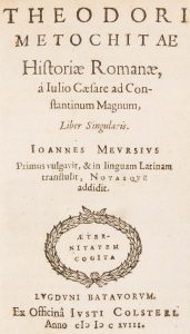 [METOCHITE − Histoire Romaine de Jules César jusqu’à Constantin] − Theo- dori Metochitae Historiae Romanae, a Iulio Caesare ad Constantinum Magnum, liber singularis. Ioannes Meursius primus vulgavit, & in linguam Latinam transtulit,...