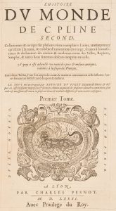 [PLINE − PINET − Histoire Naturelle] − L’Histoire du Monde de C. Pline Second, Collationnee & corrigee sur plusieurs vieux exem- plaires Latins, tant imprimez qu’escrits à la mains, & enrichie d’annotations en marge, servans à la...