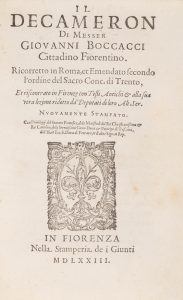 [BOCCACE] − BOCCACCIO (Giovanni) - Il Decameron di Messer Giovanni Boccacci CiMadino Fiorentino. Ricor- reMo in Roma, et Emendato secondo l’ordine del Sacro Conc. Di Trento et riscontrato in Firenze con Testi antichi & alla sua vera lezione...