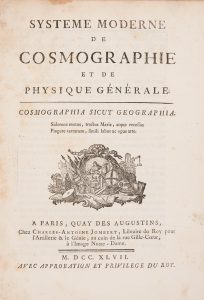 [BRANCAS−VILLENEUVE (André−François de)] – Système moderne de cosmographie et de physique générale. (…) [suivi de :] Expli- cation du flux et reflux dans leurs véritables circonstances. (…) Paris, Jombert, 1747−1749. 2 t. In−4 en...