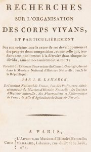 LAMARCK (Jean−Baptiste Monet de) − Recherches sur l’orga- nisation des corps vivans, et particulièrement sur son origine, sur la cause de ses développemens et des progrès de sa com- position, et sur celle qui, tendant continuellement à la...