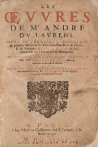 DU LAURENS (André) − Les Œuvres de Me André Du Laurens, sieur de Fer- rieres, Conseiller et premier Médecin du Tres-Chrestien Roy de France et de Navarre, Henry Le Grand, & son Chancelier en l’Université de Mont- pellier. Traduites de Latin...