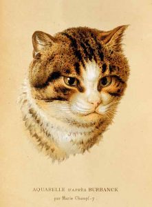 Champfleury (Jules François Félix Husson, dit). Les Chats. Cinquième édition, augmentée de planches en couleur et d’eaux-fortes. Paris, Rothschild, 1870. Un volume, in-8, de Xiv pp., 332 pp., demi-reliure ancienne en basane racinée. Dos à nerfs