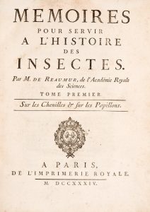 RÉAUMUR (René−Antoine Ferchault de) - Mémoires pour servir à l’histoire des insectes. Paris, Imprimerie royale, 1734−1742. 6 vol. in−4. Pleine basane postérieure moderne. Illustré de plus de 250 planches gravées par Haussard, Lucas,...