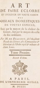RÉAUMUR (René Antoine Ferchault de) − Art de faire eclorre et d’élever en toute saison des oiseaux domes- tiques de toutes espèces, soit par le moyen de la chaleur du fumier, soit par le moyen de celle du feu ordinaire. Seconde édition....