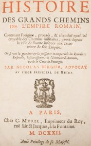 BERGIER (Nicolas) - Histoire des grands chemins de l’Empire Ro- main, contenant l’origine, progés, & estendüe quasi incroyable des chemins militaires, pavez depuis la ville de Rome jusques aux extrémitez de son empire (…) Paris, Morel,...