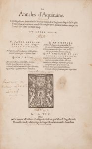 BOUCHET (Jean) - Les annales d’Aquitaine. Faicts et gestes en sommaire des roys de France et d’Angleterre, pays de Naples & de Milan : quartement revuës & corrigées par l’Autheur mesmes : jusques en l’an mil cinq cents quarante cinq...