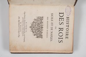 p. Pleine basane. 1 carte dépliante. Édition originale de cet ensemble de textes. Très bon état, fro1ements aux coißes. - [DE NOULIS] – Histoire des rois de Sicile et de Naples des Maisons d’Anjou. Paris, Le Mercier, 1707. In−4, [14p]−352p−[18p]. Pleine basane, dos à nerfs ornés. Reliures aux armes de la ville de Laon, plats au semis de fleurs de Lys, et de guir- landes dorés, ex−libris gravé. Histoire de Charles I et Charles II. Vignettes gravées. Très bon état. - DESMARETS (Jean) - Clovis ou la France chres- tienne. Paris, Le Gras, Courbé, Roger, 1657. In−8, (34p)−464p. Pleine basane. Illustré de nombreuses gravures. Edition Originale. Reliure très détériorée, papier inégalement bruni. Il manque la page de faux−titre et de titre et de quelques gravures.