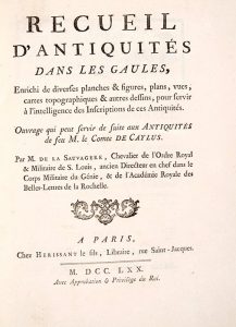 LA SAUVAGÈRE (Félix le Royer de) - Recueil d’antiquités dans les Gaules […] Ouvrage qui peut servir de suite aux Antiquité de feu M. le comte de Caylus. Paris, Hérissant Fils, 1770. In−4, ornée de 29 planches dépliantes h.−t. Une...