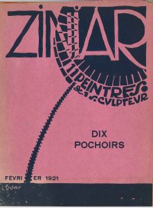 ZINIAR. Collection des 3 albums de bois gravés à tirage limité, signés et numérotés par les artistes, publiés à Lyon en 1920-1921 par le groupe Ziniar (dos fatigués, qqs rouss.).