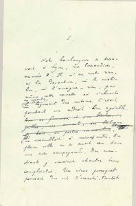– Notes et brouillons autographes (env. 100 ff., la plupart in-8), plus une photo ancienne collée sur carton. – Tapuscrit corrigé d’une première version en grande partie autographe (165 pages in-4, pagination discontinue), largement remanié par des pages autographes ajoutées, de nombreux béquets et additions autographes, et de très nombreuses corrections. – Tapuscrit corrigé (65 pages in-4, paginé 1-35 avec ff. intercalaires non numérotés) de la version presque définitive (variantes), plus tapuscrit de cette version après corrections (42 p.) ; plus 4 pages dactyl. très corrigées avec 4 pages autographes ajoutées. – 4 ff. doubles d’épreuves de l’éd. de 1931 avec gravures de Céria. – 3 photographies anciennes de la boulangerie, et 2 d’une vitrine publicitaire. – Dossier de presse : 4 cahiers avec articles collés (145 p. in-4).
