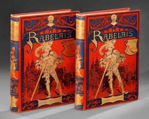 Rabelais (François). Œuvres. Édition conforme aux derniers textes revus par l’auteur. Une notice et un glossaire par Pierre Jannet. Paris, à La Librairie Illustrée, s. d. Deux volumes, in-4, de (2) ff., 494 pp., (1) f. - (2) ff., 484 pp.,