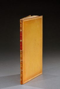 de 31 pp., pleine reliure en maroquin citron. Dos à cinq nerfs orné et doré portant deux pièces de titre en maroquin rouge, triple filet doré en encadrement des plats, filets dorés sur les coupes, tranches dorées, large dentelle intérieure dorée. Sur les bords des plats et le dos le maroquin citron est devenu, avec le temps, plus foncé. Une planche hors texte, une vignette à en-tête et un cul-de-lampe par Eisen, gravés par Simonet. Cohen, 318. Reliure signée de Philippe Belz, gendre de Niédrée, qui signait Belz-Niedrée. Dictionnaire des relieurs, p. 136. Rare et bel exemplaire.