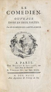 Rémond de Sainte Albine (Pierre). Le Comédien. Ouvrage divisé en deux parties. Paris, Desaint & Saillant, 1747. Un volume, in-8, de 312 pp., (3) ff., pleine reliure ancienne en maroquin rouge. Dos à cinq nerfs orné et doré portant le titre doré,