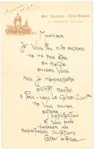 règle, et promet, dès son retour à Paris le 15 décembre, « de vous donner entière satisfaction »… On joint une lettre dictée.