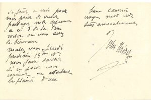 de l’auteur... 9 juin 1912, à Georges Normandy. Il lui doit des pages exquises : « j’en suis presque confus mais aussi combien touché car j’y sens en outre des choses si flatteuses que vous savez si bien dire et dont je suis fier, une toute franche sympathie que de tout cœur je partage ». Il lui offre le dessin reproduit dans son article : « la petite femme battant des mains que je serai enchanté de savoir en votre demeure amie »... On joint une L.A.S. de Pierre Carrier-Belleuse, cosignée par Auguste Gorguet (1915).
