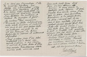 le faire. 1° Je termine les peintures du second canapé et dernier fauteuil de l’ameublement. 2° J’ai en train le pastel projet de l’écran. 3 Celui de la tapisserie femmes et enfants modernes dans le décor du midi cher à Frago. 4° Les pastels projets du paravent dont deux sont déjà faits »… Il apportera au tapissier Gauzy les peintures du canapé et fauteuils… Quant à Gustave Geffroy, avec qui il est « en rapport de bonne amitié […] j’ai lieu de penser que je ne serais pas plus en faveur de ce côté que je ne l’ai été auprès de Guiffrey, ce dernier me trouvant trop fantaisiste pas assez académique etc. etc… pour des raisons contraires. Je ne serai pas d’avantage l’élu du nouveau directeur qui professe une admiration sans réserve pour Cézanne et autres de la même école, dont, tout en reconnaissant certains mérites j’ai aversion des outrances et surtout du manque de goût. Je resterai donc […] en toute indépendance votre artiste heureux et satisfait ainsi que je le suis pour quelques autres qui partagent nos goûts du bel art bien français du XVIIIe dont je suis le fervent et enthousiaste admirateur »…