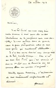 conférence que vous projetez. Je vous autorise donc de grand cœur de faire photographier celles de mes eaux-fortes qui sembleront utilisables. Je n’ai pas encore dessiné une image isolée de la Très Sainte Vierge... Elle n’est que dans trois Pietà que j’ai gravées et dans un 1er état avec le Bambino sur ses genoux avec un groupe d’enfants »...