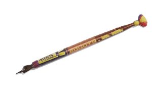 [Joséphine BAKER]. Porte-plume tressé, avec inscriptions : Bogota – Joséphine Baker – 1955 ; longueur : 18 cm.