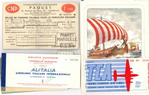 [Joséphine BAKER]. 17 documents divers. Voyages. 7 billets d’avion : Israël Airlines (Paris-Tel-Aviv 1954), Trans-Canada-Airlines (1955), United Airlines (1955) Alitalia (Rome-Genève), Air France (Tokyo-Saïgon-Paris). Billet de passage...