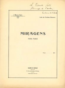 (Lisboa, Sassetti & Ca, s.d.), et Miragens (Lisboa, Valentim de Carvalho, s.d.), toutes portant un envoi autographe au pianiste Ricardo Viñes : « à Ricardo Viñes. Hommage de l’auteur. Lisbonne le 27 Févr. 1917 ». Cachets encre Bibliothèque musicale Ricardo Viñes.