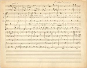 Charles LECOCQ (1832-1918). Manuscrit musical autographe pour L’Arbre de Noël, [1880] ; 6 pages et demie oblong in-fol. Scène complète pour chœur et voix avec accompagnement de piano, pour L’Arbre de Noël, féerie en 30 tableaux créée...