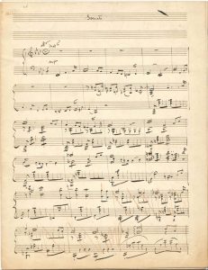 lignes, elle présente une trentaine de mesures barrés au crayon brun. On joint un autre manuscrit autographe pour piano, Andante espressivo, en mi bémol mineur, à 4/4, sans rature ni correction (4 pages in-fol.).