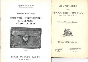 SPECTACLE. 7 catalogues de ventes, Paris 1937-1981. Catalogue de la Bibliothèque de Madame Segond-Weber, Sociétaire honoraire de la Comédie-Française (par Georges Andrieux, 30 juin 1937, préface d’Édouard Champion). – Georges...