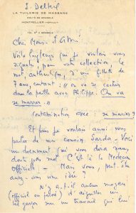 Joseph DELTEIL (1894-1977). L.A.S., La Tuilerie de Massane, à un ami ; 2 pages in-8 à son adresse. Il signale le mot d’une fillette de 7 ans : « “On va se cacher dans la paille avec Philippe. On va se marrer.” Contamination avec : se...