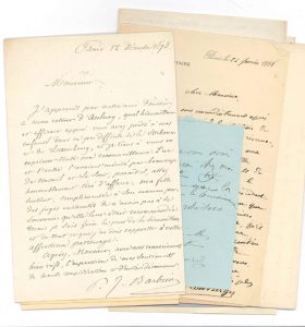 DIVERS. Environ 70 lettres, la plupart L.A.S. à Gabriel Saint-René Taillandier (on joint qqs cartes de visite et qqs copies). P.J. Barbier, Camille Barrère, Léon Berger Albert Besnard, Léon Bonnat (plus une à lui adressée), Paul Bourget,...
