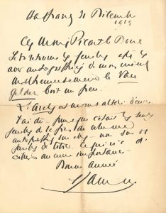 Francis JAMMES (1868-1938). L.A.S., Hasparren 31 décembre 1929, au dessinateur Jean Picart Le Doux ; 1 page in-4. « Je vous retourne les feuilles après les avoir autographiées de mon mieux. Malheureusement le Van Gelder boit un peu....