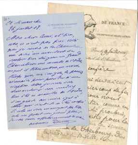 LITTÉRATURE. 5 L.A.S. et 1 L.S. (quelques portraits joints). Juliette Adam, Maurice Donnay, Édouard Hervé, Georges Perrot, Narcisse-Achille de Salvandy (2, une au maréchal Vaillant).