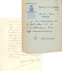 LITTÉRATURE. 15 L.A.S. et 6 cartes de visite autographes ou a.s., à Léon Deffoux. Henri Bachelin, André Billy, Léon Bocquet, Mathilde Bruant Tarquini d’Or, Francis Carco, Guy-Charles Cros, Lucien Descaves, Roland Dorgelès, Paul Fort (2),...