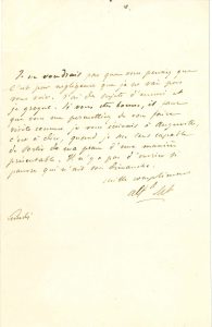 Alfred de MUSSET (1810-1857) poète. L.A.S. « Alfd Mt », Lundi, [à Mme Jaubert] ; ¾ page in-8 (fente réparée). « Je ne voudrais pas que vous pensiez que c’est par négligence que je ne vais pas vous voir. J’ai des sujets d’ennui...