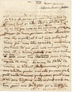 jésuite Caveirac, pourfendeur de l’Édit de Nantes, des candidatures à l’Académie française du chevalier de Chastellux et de Malesherbes, et de l’avocat et économiste Théodore Rilliet de Saussure. Elle assure Reverdil de son amitié… « Les crimes de l’Abbé de Caveirac ne m’étoient point inconnus ; j’aime à vous entendre parler avec cette ferveur que le grand monde diminuë quelquefois ; quand à moi je me sens toûjours prête à souffrir le martire pour une Religion qui ne l’inffligera jamais, et qui seule a concilié les droits de la divinité avec ceux de l’humanité ; nous espérons bien un peu plus de tolérance à present. Il semble que les grandes idées et les grands principes sont comme les grandes masses qui avancent lentement, mais qui détruisent à la fin tout ce qui occuppoit leur place. Ce siècle n’est certainement pas plus doux que le précédent. Nous avons vu renouveller il y a quelques jours les horreurs du parricide ; et je crains que le systême du chevalier de Chatelu ne soit un peu ebranlé, à propos du chevalier tous ses amis lui destinoient la place vacante à l’academie françoise son discours de reception étoit commencé lorsque la réputation de Mr de Malsherbe prenant un nouvel eclat par la fermeté et la noblesse de ses harangues, le chevalier s’est jetté à ses pieds en quelque manière pour l’engager à prendre cette place qui lui étoit destinée. Mr de Malsherbe a cedé et le chevalier s’est fait beaucoup d’honneur par cette conduite »... Rilliet de Saussure est chez les Necker : ils lui trouvent « de l’esprit et des connoissances. Ses manières extravagantes ajoutent encor à limpression qu’il nous fait, elles se ressemblent assez à ces accents étrangers qui font valoir les moindres pensées. On est étonné qu’un fou ait de l’esprit comme les parisiens sont surpris qu’un autre qu’un françois sache combiner des idées »...