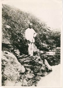 [Arthur RIMBAUD (1854-1891)]. Photographie, contretype ancien ; 17,8 x 12,9 cm. Portrait en pied de Rimbaud en Abyssinie, annotée au dos par Léon Deffoux : « Photographie de Rimbaud en Abyssinie. Publiée, d’après une photographie...