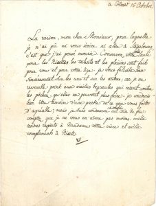 VOLTAIRE. L.S. « V », Colmar 15 octobre [1754], à François-Louis Defresney, « Directeur des Postes à Strasbourg » ; 3/4 page in-4, adresse. [IV, 3878] « La raison […] pour laquelle je n’ai pû ni vous écrire ni aller à...