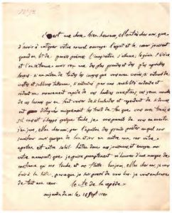 3 L.A.S. au poète Roucher. Agen, 1783 & 1784, au jardin du Roi, 1787. 5 pp. petit in-4, adresse au verso. 1783 : Le comte le remercie de l’envoie de son recueil de poésies ; (…) Je saisis une occasion de vous parler de l’impression que fait sur moi cet ouvrage de génie (…). Vous verrez par mon ouvrage que si je suis né sans talent pour la poësie, je n’en suis pas moins plein d’amour pour elle et d’admiration pour les grands poëtes et particulièrement pour ceux qui comme vous, chantent si bien la nature dont je cherche à expliquer quelques lois (…). 1784 : il le remercie de ses condoléances, à la mort de son père et lui annonce se fixer désormais dans la Capitale au centre des arts et des sciences, à portée de profiter de la conversation des grands maîtres : j’aurai besoin de leurs lumières pour être éclairé et de leur amitié pour gouter encore quelque bonheur (…). Il lui parle encore de sa passion pour la musique, faisant quelques compositions ; (…) J’ai composé quatre grands opéras ; le premier nommé « Omphale » est entré entre les mains de l’Académie de musique depuis très longtemps ; il serait joué à présent, sans la prolongation de mon séjour en province (…). Il annonce que son second tome sur la Physique est sous presse. 1787 : à propos de l’ouvrage de Roucher ; C’est une chose bien heureuse (… que d’avoir à critiquer votre nouvel ouvrage. L’esprit et le cœur jouissent, quand on lit de pareils poëmes ; l’imagination s’allume ; le génie s’élève (…). Je jure (…) par l’Apollon des grands poëtes auquel nous sacrifions aussi, quoique de loin et sous un autre nom, car Votre Apollon est notre soleil (…). Il attend son manuscrit. Joint la transcription d’une lettre de Lacépède par Emile Roucher.