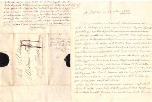 Correspondance aut. à sa femme et à sa fille « Minette ». Montfort l’Amaury, Ablon, Paris, 1787-1788. Suite de 21 lettres originales et 4 copies d’Emile Roucher, env. 54 pp. in-4 et 3 pp. in-12, adresse sur la plupart avec cachet de cire au monogramme ; & 17 l.a.s. dont 2 copies, 42 pp. in-4, adresses. Correspondance familiale de Roucher, éclairant sa vie quotidienne comme poète et receveur des gabelles à Montfort-l’Amaury, faisant état des comptes domestiques, de quelques détails intimes et donnant des nouvelles de famille dont son frère Roucher d’Aubanel, évoquant encore quelques événements politiques et littéraires de l’époque en particulier sur les salons parisiens. Octobre 1787 : il travaille avec ardeur au 3e chant de son poëme des Jardins ; bien avancé, il pense pouvoir achever ses Jardins à la fin du mois. Content de son travail, il le doit à la bonne santé de sa femme « Liselé » et de sa fille « Minette » ; à propos des livres de Stepleton qui arrive par carrosse. Avril 1788 ; il donne le détail de sommes payés à divers ; il tient avec exactitude le livre des dépenses que sa femme trouvera en règle à son retour à Vaux St-Maurice où elle est chez M. d’Ussieux ; projet d’établissement de son frère comme receveur et réflexions sur son mariage d’Aubanel en juin ; à propos de l’éducation de sa fille, et nombreux conseils ; mai 1788 : sur l’affaire du président d’Ormesson et celle du Parlement de Rennes en juin ; commissions dont il s’est acquitté et état de sa bourse à Montfort ; se plaignant de l’absence de nouvelles ; juillet 1788 : annonçant la mort de son père ; août 1788 ; visite à Mr de Montjoie et Mlle Sully ; énumération sur les nouvelles affaires de sa femme, le corset de Minette, ses bas de soie, etc. septembre 1788 ; lettre à l’annonce qu’il est père. Mention de Desherbiers, d’Aubanel, Denoux, d’Ussieux, Dupaty, Montalembert, Hénin, Mde Gilbert, Mlle de Sully, comtesse de Latouche, La boullay, Berquin, Mde Helvetius, etc. Joint la correspondance de Roucher à sa fille Eulalie pour qui il prend un soin particulier à son éducation, la corrigeant sur son écriture et son orthographe, conseils pour être une femme éclairée par l’application de l’esprit, sur l’art de la conversation, l’encourageant dans la pratique de l’italien et de l’anglais, sur ses visites à Mde Helvetius, etc.