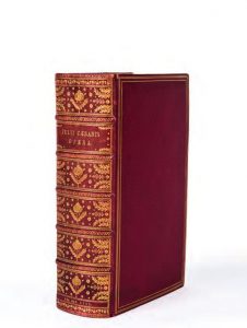 Leyde, Boutesteyn & Luchtmans, 1713 ; fort vol. in-8 de [8] ff., 862-[52] pp., [2] ff., 224 pp., reliure de la fin du XIXe siècle maroquin cerise, filets dorés en encadrement, dos à nerfs orné, tranches dorées (Bound by J. Clarke). Belle édition ornée d’un frontispice gravé par Bernard Picart, de 3 cartes, et de 12 planches, certaines repliées donnant des scènes de la vie de Jules César, des installations militaires de la Guerre des Gaules, des médailles, etc. Exemplaire luxueusement relié en maroquin anglais de qualité.