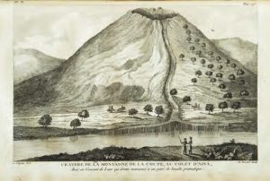 Recherches sur les volcans éteints du Vivarais et du Velay ; avec un discours sur les volcans brûlans… Grenoble, Joseph Cuchet, 1778 ; in-folio de [2] ff., xviii-[2]-460 pp., [2] ff., demi-veau ancien, usagé. Édition originale de l’ouvrage qui marque les débuts scientifiques de la vulcanologie. Elle est ornée en premier tirage de 20 grandes planches gravées sur cuivre par Fessard d’après les dessins de Veyrenc et d’Arnaud Gautier d’Agoty. La vignette de titre représente l’Etna en éruption. L’auteur décrit les éruptions contemporaines du Vésuve et de l’Etna et les compare aux formations volcaniques anciennes. L’ouvrage contient aussi des remarques pittoresques sur les habitants de l’Auvergne.- Rousseurs éparses. Brunet II, 1192.