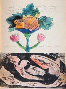 Paris, éditions Saint-Germain des Prés, 1976 ; in-8 en ff., couverture chemise et étui de toile brune. Édition originale du texte, ornée de 2 gravures en relief de Monette Guermont. Tirage à 50 exemplaires plus 12 hors commerce, le tout sur vélin. Seuls ces exemplaires ont les deux gravures. Il y a eu aussi 500 exemplaires sur offset.