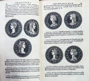 Zurich, Andreas Gesner, 1557 ; in-8 de [16] ff., 335 pp., reliure du XVIIe siècle veau brun, dos à nerfs orné, encadrement de filets dorés sur les plats, tranches mouchetées. Seconde édition de cet ouvrage initialement paru à Lyon en 1553, incontournable pour la connaissance des monnaies romaines, et l’histoire de la gravure sur bois. Il contient de très nombreuses vignettes dans le texte, représentant les portraits des empereurs romains, tirés de leurs pièces de monnaie respectives. Ex-libris de Gaston, vicomte de Luppé. Graesse, Trésor de livres rares et précieux , VI, p. 507.