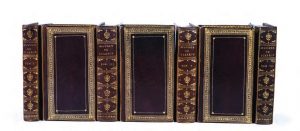 7 vol. petit in-12, maroquin brun de la toute fin du XVIIIe siècle, dos lisses ornés, dentelle et roulettes dorées en encadrement sur les plats, dentelle intérieure, tranches dorées. Nouvelle édition, revue, corrigée et augmentée, contenant de nombreuses pièces omises dans les éditions antérieures. Elle est considérée comme la meilleure édition collective de Scarron. Portrait de l’auteur et de 6 ravissants frontispices, gravés par Folkema d’après Dubourg. Très bel exemplaire en maroquin décoré provenant (d’après une note à la mine de plomb) de la bibliothèque de Nicolas-Henri de La Bédoyère. Il est absent du catalogue de 1862. L’étiquette du relieur a été arrachée. Tchemerzine, V, 742.
