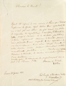 MEYERBEER Giacomo (1791-1864). Compositeur allemand. Ensemble de 6 L.A. ou L.A.S. Meyerbeer adressées à Beauchesne et datées de 1825 à 1831, 1 page ou 2 pages selon l'envoi, format divers, quelques pliures et traces d'humidité mais bon état...