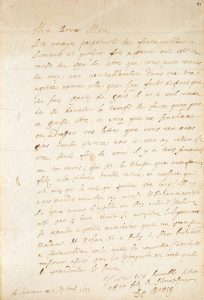 Lettre portée avec nom du destinataire au dos du document et comportant des traces de cachet de cire rouge.